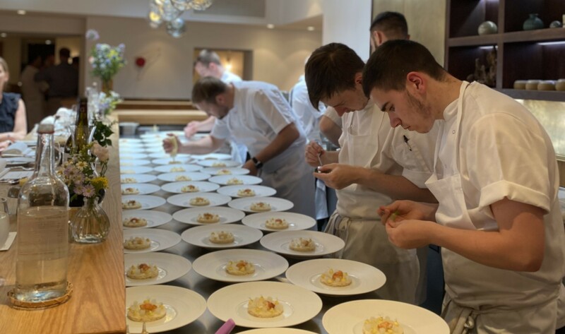 Good Food Guide members joined Brad Carter at Westlands in Evesham, one of the restaurant’s key producers and its temporary home for the 2023 summer season. In one of the impressive glasshouses, Brad and the team cooked a special eight-course tasting lunch for Good Food Guide members. Lunch was followed by a Q&A hosted by Good Food Guide editor, Elizabeth Carter, and we rounded off the afternoon with a tour of the gardens and greenhouses with Westlands’ owner Will Boers. Tickets included a glass of Gusbourne sparkling wine on arrival and the eight-course lunch.