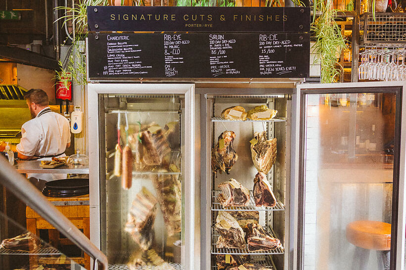 “With its altar-like, meat-ageing cabinet and a blackboard listing premium cuts, Porter & Rye reveres the ‘cow as king’ and customers duly pay homage. Inside, it’s small with mezzanines maximising the tables, although judicious use of glass and subtle lighting achieves ...” Read More