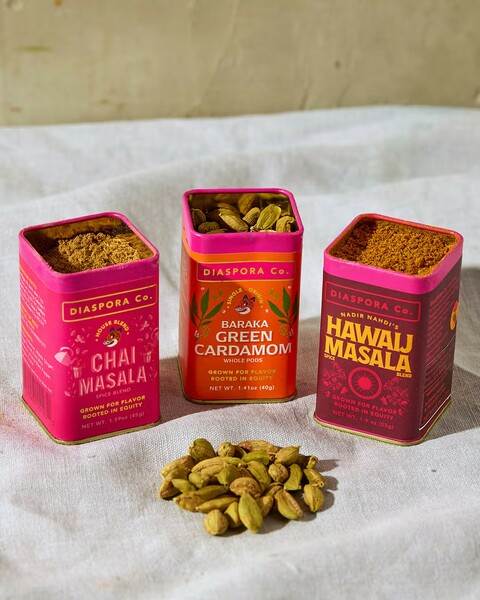 Diaspora Co, known for their commitment to fair sourcing and flavour-driven spices, work closely with the Chako family in Udumbanchola, Kerala. The family have long nurtured the biodiverse conditions to grow wild cardamom, which is the defining note in the two masalas included in this trio – Chai and Hawaij.