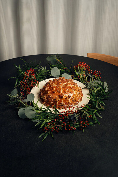 Roberta’s much-loved Great British Menu pie returns for another Christmas at home. Generous enough for four to six, it’s a proper pie: braised beef shin and ox cheek layered with caramelised onions, chicken mousse and ox tongue, all wrapped in festively decorated pastry.