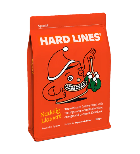 The ultimate festive blend with notes of milk chocolate, orange and caramel from Cardiff coffee roasters Hard Lines.