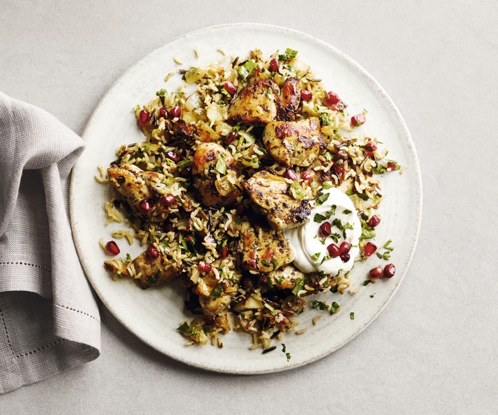 Zhoug is used to pep up this vibrant chicken pilaf with pomegranate. Alternatively, top homemade labneh with a drizzle of zhoug.