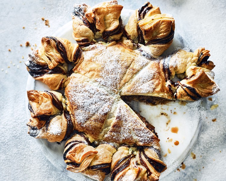 For a Christmas show-stopper, try this miso caramel, chestnut and chocolate snowflake.