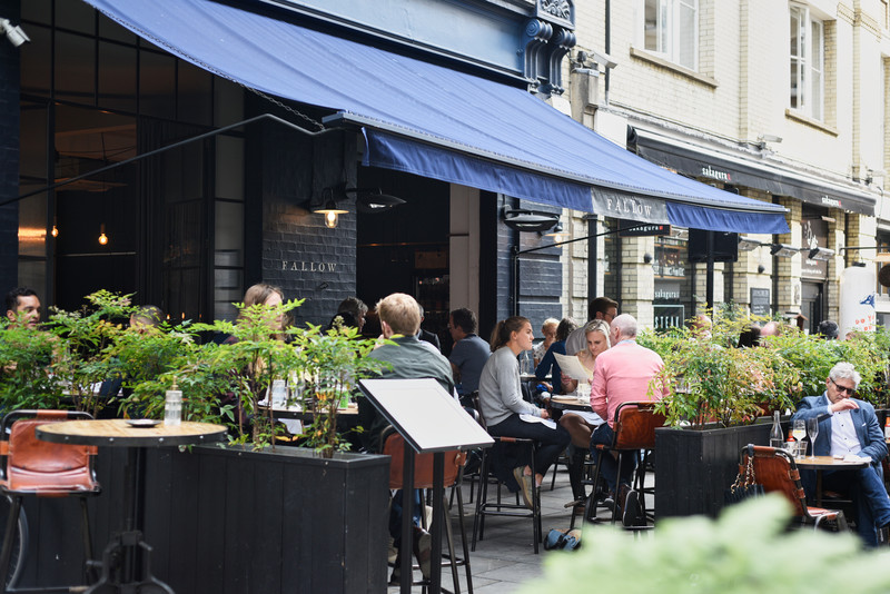Heddon Street, the pedestrianised foodie enclave off Regent Street, has been bolstered by awnings and greenery to create a buoyant al fresco dining scene. Leading by example is the terrace fronting Jack Croft and Will Murray’s simple and sustainable restaurant (reopening in May for indoor dining) where you can expect ingredient-led dishes championing big flavours, perhaps torched mackerel with coco beans and burnt tomato-vine dressing. Terrace opens 12 April.