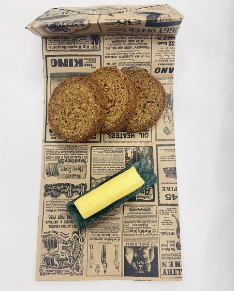 Using a pastry brush and your lining paste, coat 2 old baked bean cans, or a 500g loaf tin. It’s important to have your oven preheated and your cans or tin prepared before starting the recipe, as once the dough is mixed it is best baked immediately.