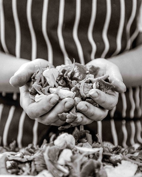 Hen of the woods mushrooms come in a nest of spinach and under an evanescent foam of Tunworth soft cheese. In the centre of it is a vividly orange egg yolk cooked sous-vide, and all of this sits on top of a little muffin. With wild garlic and an acute note of vinegar in the dressing, it's effectively a kind of egg Florentine breakfast dish, but more enjoyable, full of savoury richness and warmth.