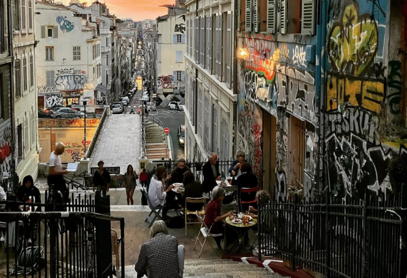 On the steps running from Cours Julien towards Noailles, Limmat sits proudly among graffitied walls, sandwiched between two of Marseille’s busiest streets. Its vibrant surroundings provide the perfect contrast to the pared back, thoughtful cooking that highlights fresh seafood with a small a la carte menu brought to life in a tiny kitchen.