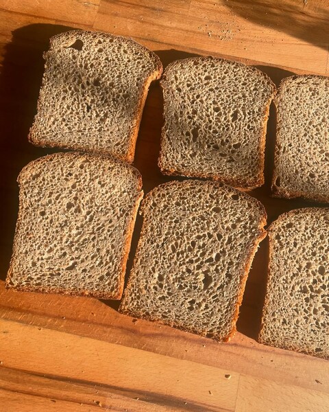 At the moment, they source flour from Fife-based Scotland the Bread and the Lapwings Community Mill in Aberdeenshire. Wing Mon’s signature ‘daily bread’ is a wholemeal tin-shaped sourdough made with a mix of flour from both for ‘a combination of flavour and functionality.’ The Scotland the Bread flour mixes Scandinavian and Scottish heritage varieties. ‘It’s very flavourful and it’s great as an all-rounder but doesn’t have the strength of a breadmaking flour. The Lapwings is a modern breadmaking wheat so the combination of the two means that we get not only the flavour but the texture we’re looking for.’