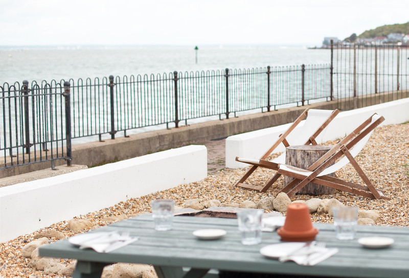 Picture the scene: a laid-back little restaurant just steps from the Solent where you can pull up a deckchair, sit at a picnic table, or lounge on a beanbag in front of a magnificent sea view. It might be summer-sparkly with yachts, kayaks and paddle-boards, or winter-rocky with white-topped waves (you can look at these from the glass-fronted, Scandi-vibe, dining room if it’s chilly). You might catch a spectacular sunset over a flat-calm evening sea.