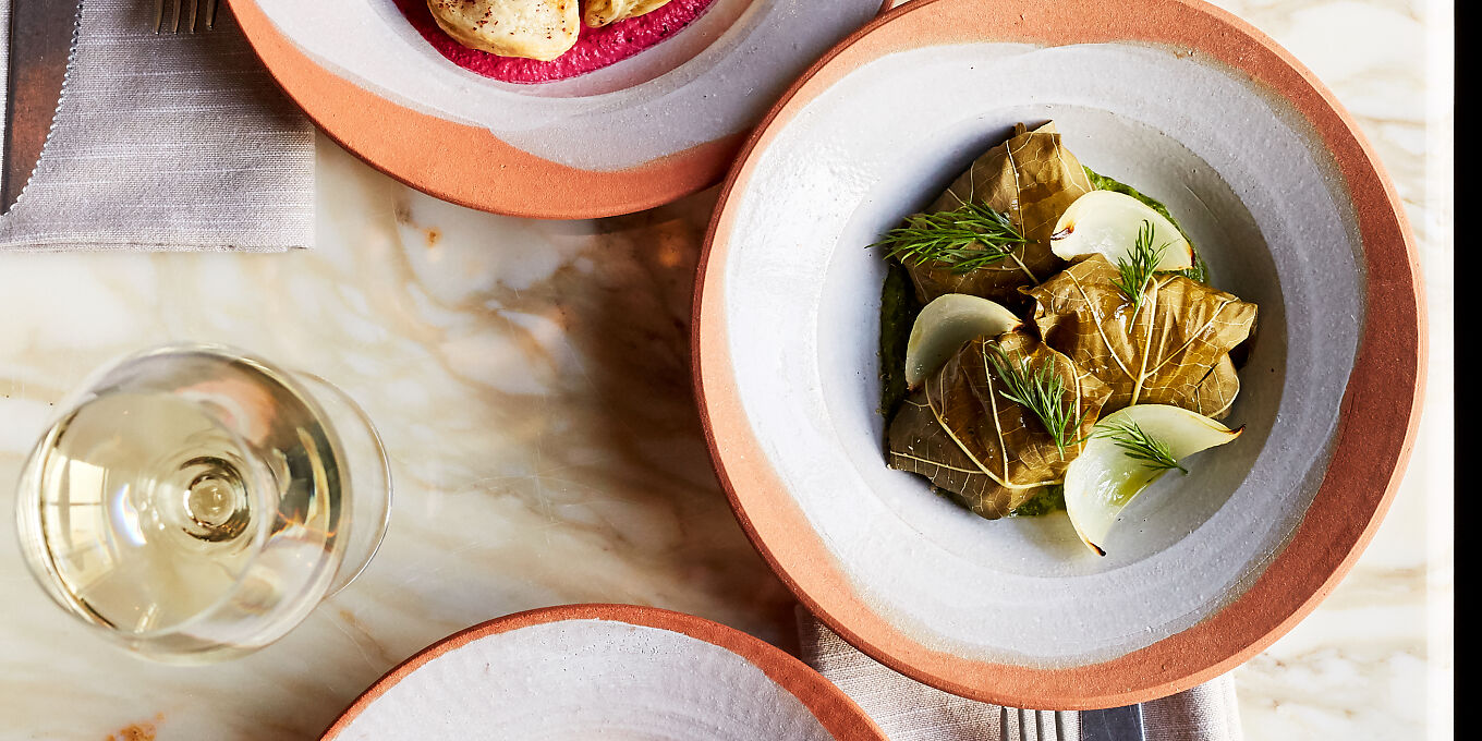 ‘Best to come in a group and order as many of the sharing dishes as possible,' is sound advice for those planning to eat at this hugely popular Palestinian restaurant which opened in 2022 after a crowdfunding campaign; bagging a reservation for dinner can take weeks. Akub (meaning cardoon or edible thistle) spreads over four floors, with white-painted brick walls, foliage dangling from metal keys, tiled flooring, ash-wood tables, beams, bowls piled with fresh lemons and an olive tree creating a relaxed and convivial vibe. Fadi Kattan hails from Bethlehem and offers his own take on contemporary Palestinian cuisine via a menu that is divided into ‘ard’ (land, as in vegetarian), ‘bahar’ (sea) and ‘lameh’ (meat), while showcasing the flavours of Galilee, the Gaza Strip and the West Bank. Start, perhaps, with a creamy risotto made with freekeh grains, its nutty flavour combined with charred green wheat infused with saffron, and topped off with dried laban jameed (goat's milk yoghurt) and pine nuts. A kofta made with a fleshy Rye Bay skate could follow, teamed with loumi (black lemon), grape leaves, coriander and tahini, while mansaf (a classic Bedouin lamb dish) is served in a trio of deep-fried filo parcels stuffed with succulent pulled shoulder, rice and garlic set atop a bright yellow laban jameed sauce. Other good calls range from the warm, soft zaatar bread topped with sumac, thyme and toasted sesame seeds (plus a drizzle of olive oil) to a rich, dark Dead Sea chocolate cake (its sweetness cleverly offset with sea salt) served with caramel and tahini ice cream. A handy drinks list features cocktails influenced by Levantine ingredients (dates, arak and apricots), beers from the region, and 25 wines (from £28) including a couple from the Taybeh Winery in Palestine.