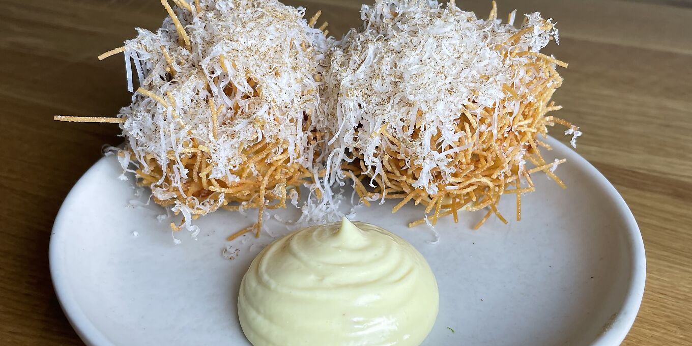 At the bottom end of Timber Hill in the centre of Norwich, this gem of an Italian restaurant looks nothing like the trattorias of yesteryear, but is instead a smart long room done in gentle teal, hung with pastel-hued paintings and furnished with unclothed, well-spaced light wood tables. Oliver Boon's menus reflect his lifelong love affair with Italian foodways, and highlighted names on his classy CV include Gordon Ramsay and Michel Roux Jr. Expectations are high and you won't be disappointed, with thrills turning up in every corner of the menu. Indeed, it's worth fitting in a couple of the nibbles before setting about the antipasti – perhaps creamy-rich croquettes of 24-month Parmesan or sweet-crusted garlic brioche with whipped garlic butter. Beef carpaccio with Harry's Bar dressing will whisk you off to Venice in a trice, but hake Kyiv with 'nduja, baccalà and coppa is more of a mystery tour. 'We couldn't resist it,' a reporter confesses, 'and I'm glad we couldn't....