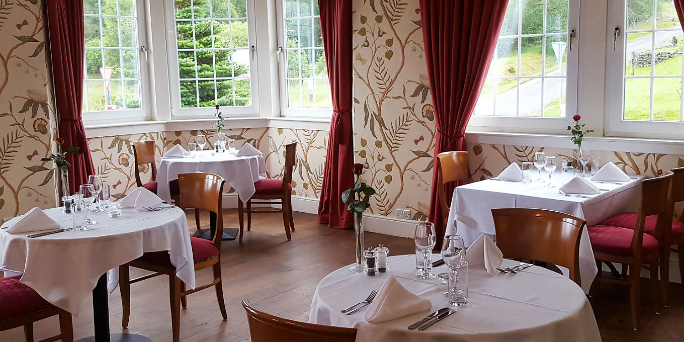 A haven for doughty hikers on the West Highland Way, this personally run hotel matches its impeccable welcome, tartan upholstery and cheery local art with a hearty menu that runs from Cullen skink and haggis croquettes with whisky sauce to Schiehallion beer-battered haddock and chips. Superb Scottish ingredients also figure in more ambitious dishes such as seared loin of Taynuilt venison with celeriac purée, red berry jus, confit shallot and crispy potato terrine, while traditional sticky toffee and date pudding is the best-selling dessert. Hotel breakfasts are a full Caledonian affair, and there are malt whiskies galore on the drinks list.