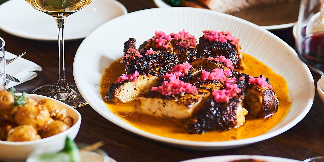 Expect a menu built around sharing plates, with flavours and textures criss-crossing China, South-East Asia, America and Spain – all commendably underpinned by British produce. Adobo, a popular Filipino seasoning, is given a twist to impart depth to golden-brown mushroom croquetas, which sit on a tiny mound of mushroom duxelles. Other openers range from smoky chicken heart skewers to superb prawn and pork siu mai topped off with crabmeat and served with a crustacean bisque lifted by a touch of lime.