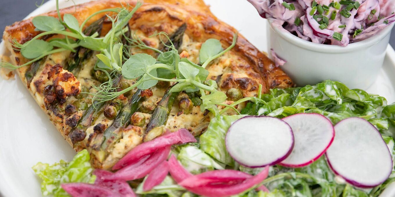 Always lively with chatter, Folk is a go-to brunch, lunch and takeaway spot on the edge of Bury St Edmunds. Drop in for a coffee and pastry, a slice of malt loaf from superlative local bakery, Woosters, or linger over the wider menu of delicious things made on site: a bowl of classic French onion soup with a cheesy croûton or butter-softened mushrooms and spinach heaped generously on toast, perhaps, or an open beef sandwich with chimichurri mayo and rocket. Fresh-made smoothies, the carrot loaf cake, and the raspberry and white chocolate blondies also come highly recommended. Handy for food shopping too.