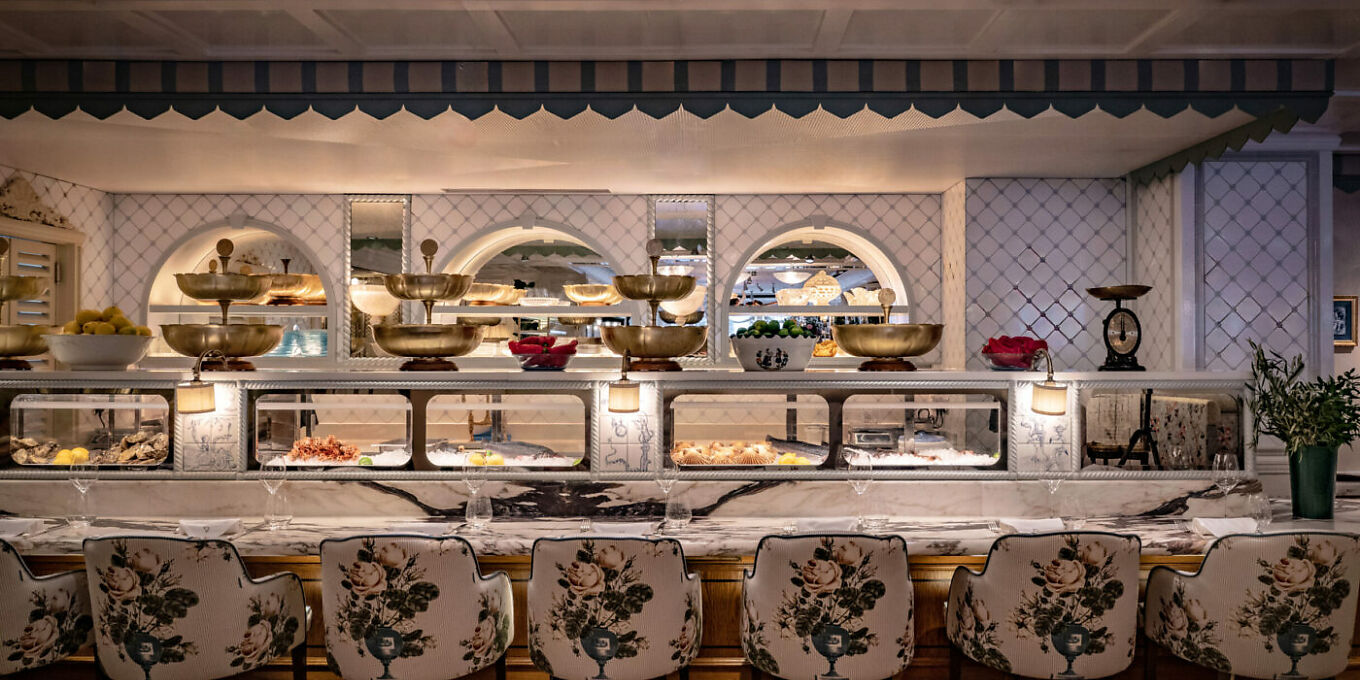 Alternatives to fish abound, including delicate agnolotti filled with lemony ricotta, ribeye steaks and chicken milanese. As for desserts, expect luxurious old-school classics, from daily tarts and crêpes Suzette to chocolate mousse and strawberry cheesecake. For those wishing to dip only a toe in the water, the set lunch is good value at £34 for three courses. The cheapest wine, however, is £55.