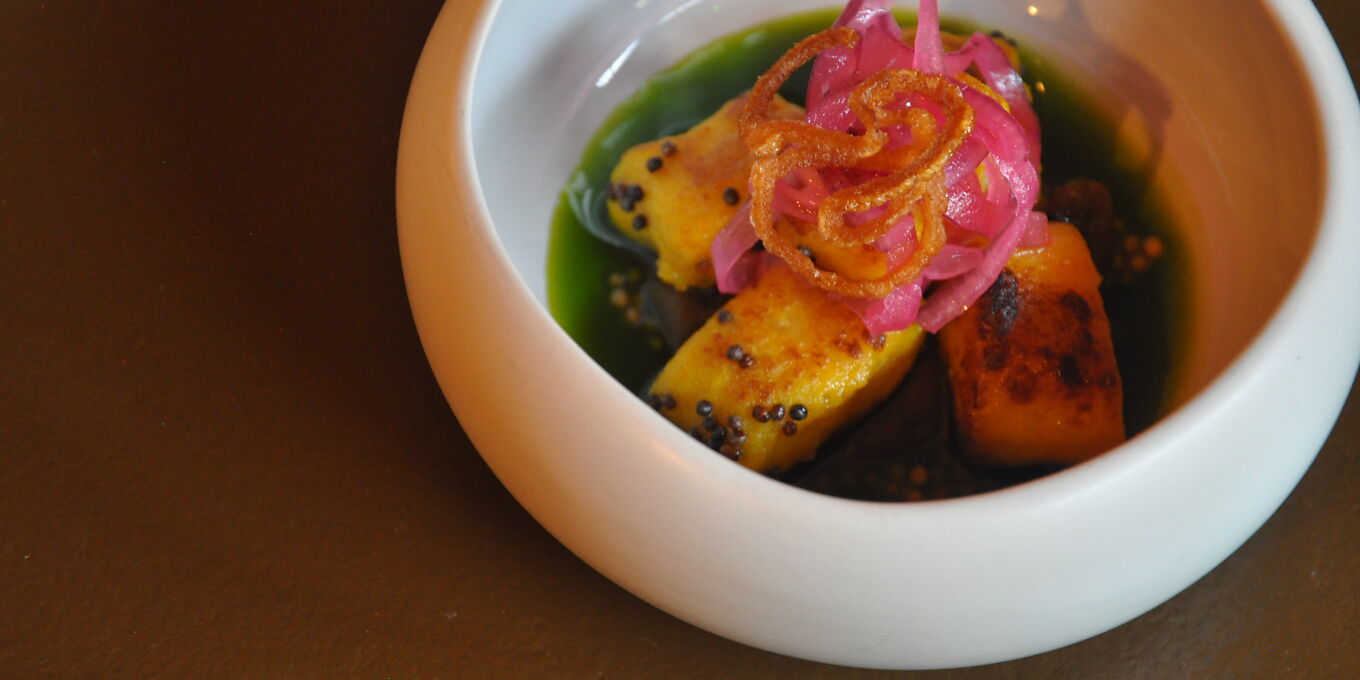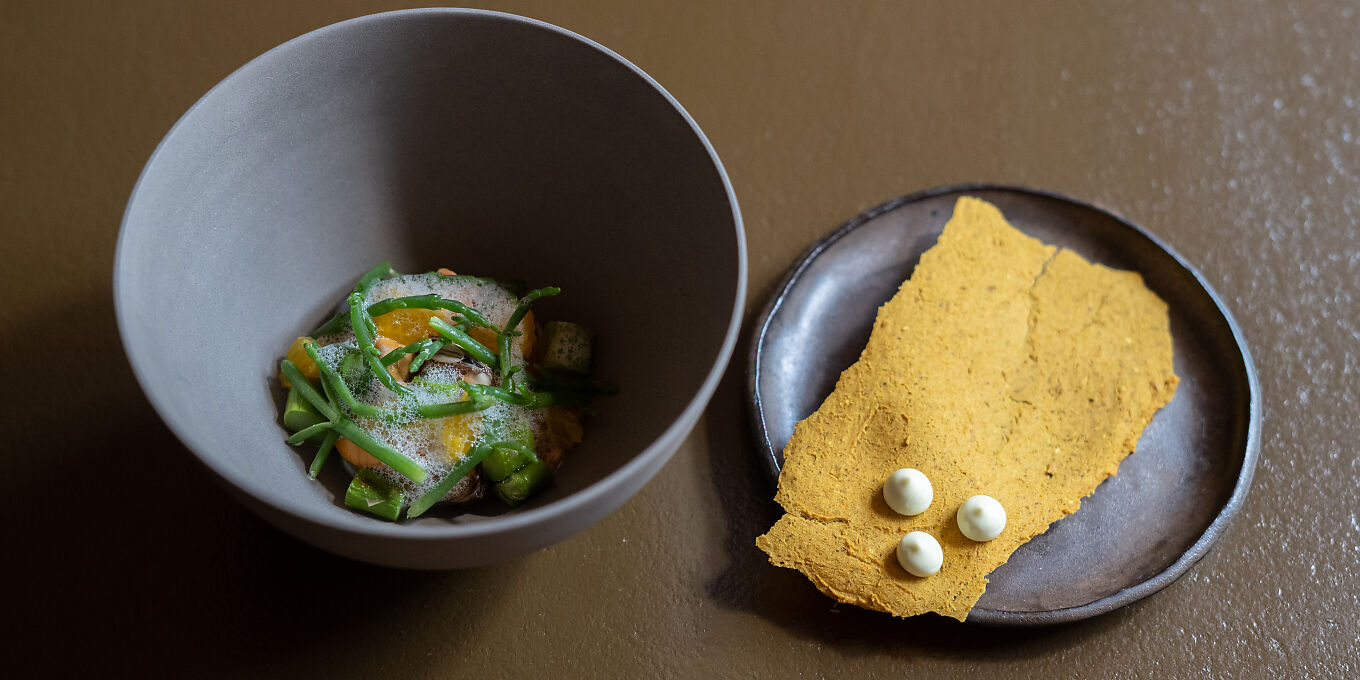 The unfussy semi-basement is intimate, understated and functional, and there’s no disputing the valiant intent in the kitchen – Jack Lury’s Sri-Lankan/British heritage provides the jumping-off point for a repertoire of precise, produce-led westernised dishes. With just 10 seats in the tiny dining room, the chef works alone, and his meticulously produced 10-course tasting menu of snacks and small plates (the only option available) is well-balanced.