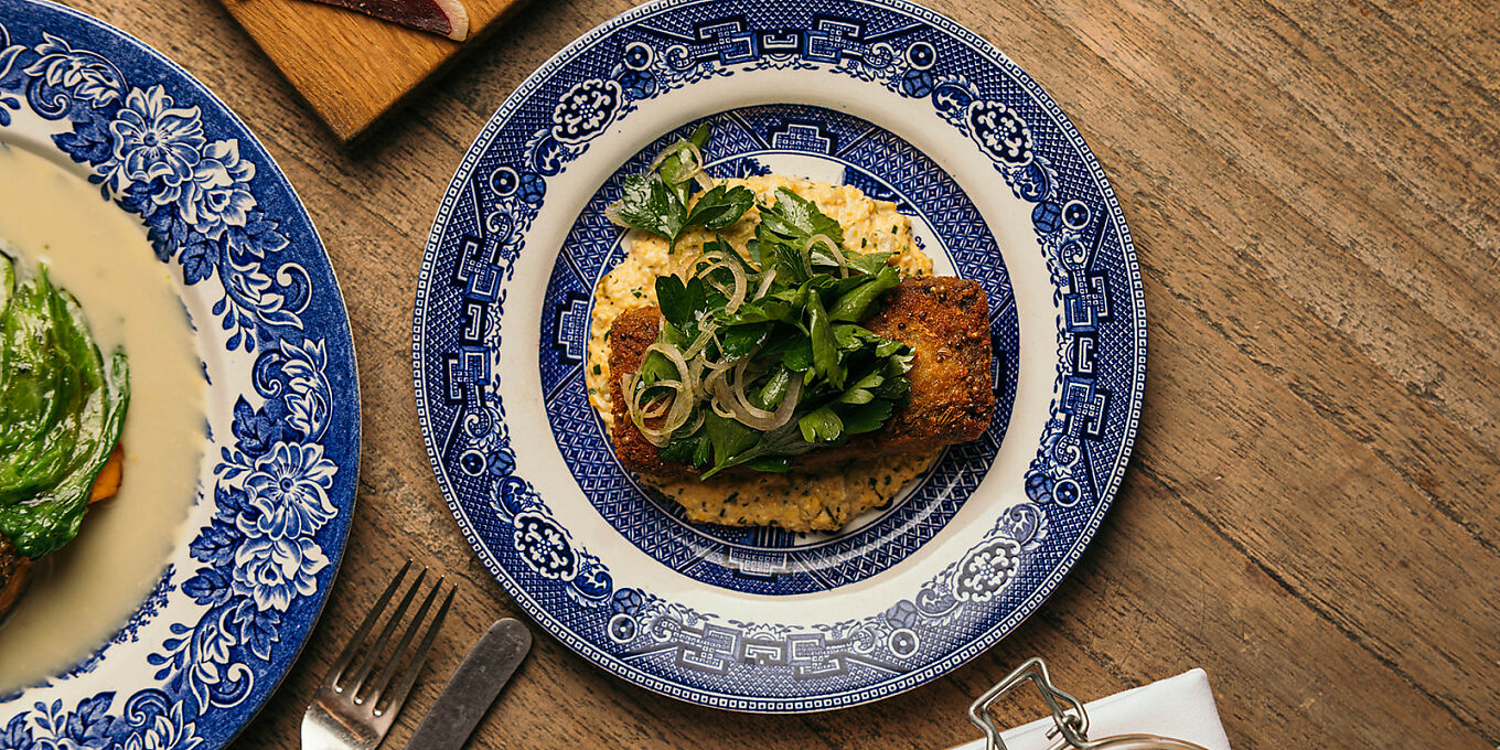 In summer, when this inland spot lures peace-seekers, there’s plenty of outdoor space for lingering with a glass of local Cobble Hill fizz or, perhaps, daytime coffee and cake. The restaurant carte is restrained (a few starters, desserts and sides bookend five main-course options) and there are specials on a chalkboard. But what comes out of the open kitchen bursts with flair and ambition.