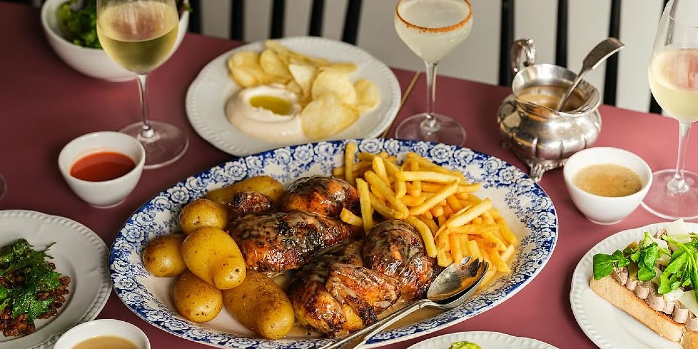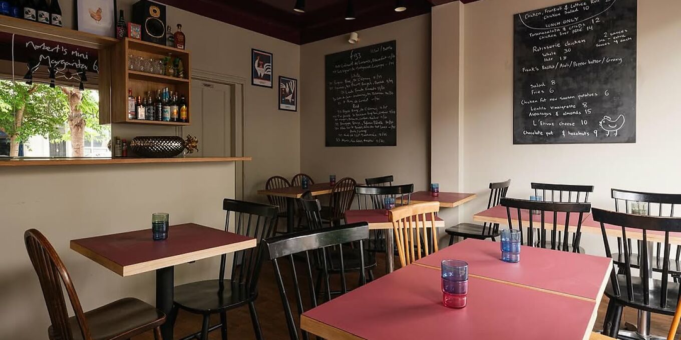 'Quick, delicious and good fun' is the verdict for this no-bookings, no-frills rotisserie chicken restaurant off East Dulwich's main drag. Co-founders John Ogier (Lyle's, Lasdun) and Jack Coghlan (Planque) have swapped refined dining for flames in a tightly packed 16-seater space, and the formula is simple: high-quality chicken, deftly handled on a rotisserie wall, with sides including boiled new potatoes basted in chicken fat, French fries and dressed leaves with a lentil viniagrette, as well as black pepper butter and chicken gravy for saucing. For afters, there might be a chocolate parfait or cheese. The short and sweet, all-French wine list opens at £35, while cocktails, particularly their piña colada, play a starring role.