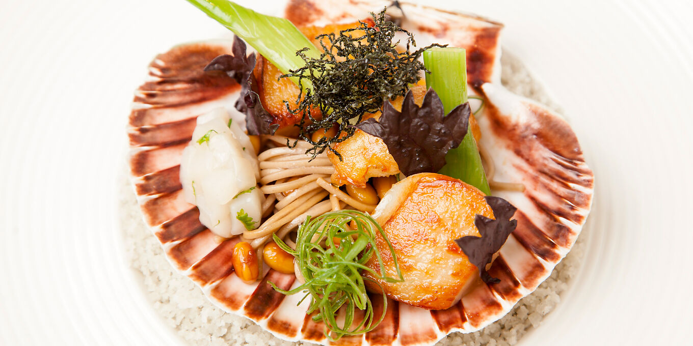 A six-course tasting menu is the sole option, apart from a must-book four-course lunch. Even the latter gives ample opportunity to sample the technical skill of the kitchen via a procession of beautifully presented dishes starting with three exquisite canapés including standout blue-cheese beignets. After a selection of warm, crusty breads, our mid-February visit continued with a perfectly constructed salmon and crab rillette, topped with slices of crisp marinated cucumber and encased in an apple jelly: a harbinger of sunny days, accentuated by its garnish of purple violas. But the kitchen can deliver fierce flavours too, as in a serving of confit carrot in a chilli-hot Thai broth zinging with lemongrass, coconut and lime.