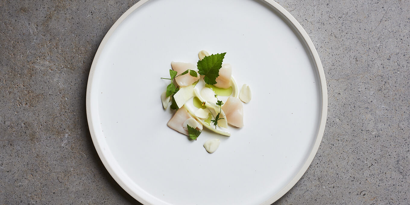 ‘Rabbit eats carrot’ showcased another estate ingredient in an impressively elaborate signature dish of many parts: a terrine of rabbit, duck liver, pork and rabbit jelly sandwiched between wafers of 'feuilles de brick' pastry, paired with carrot mayonnaise; buttermilk- and vodka-marinated deep-fried rabbit leg, presented in a smoke-filled cloche; pastry boats of confit rabbit and chilli jam, topped with rabbit mousse, cured egg yolk and marinated carrots. The dish was completed with crisp carrot 'leather' tartlets filled with rabbit offal and presented on a moss-topped log from the garden – a bravura exhibition of culinary technique and nose-to-tail cooking that was a delight to eat.