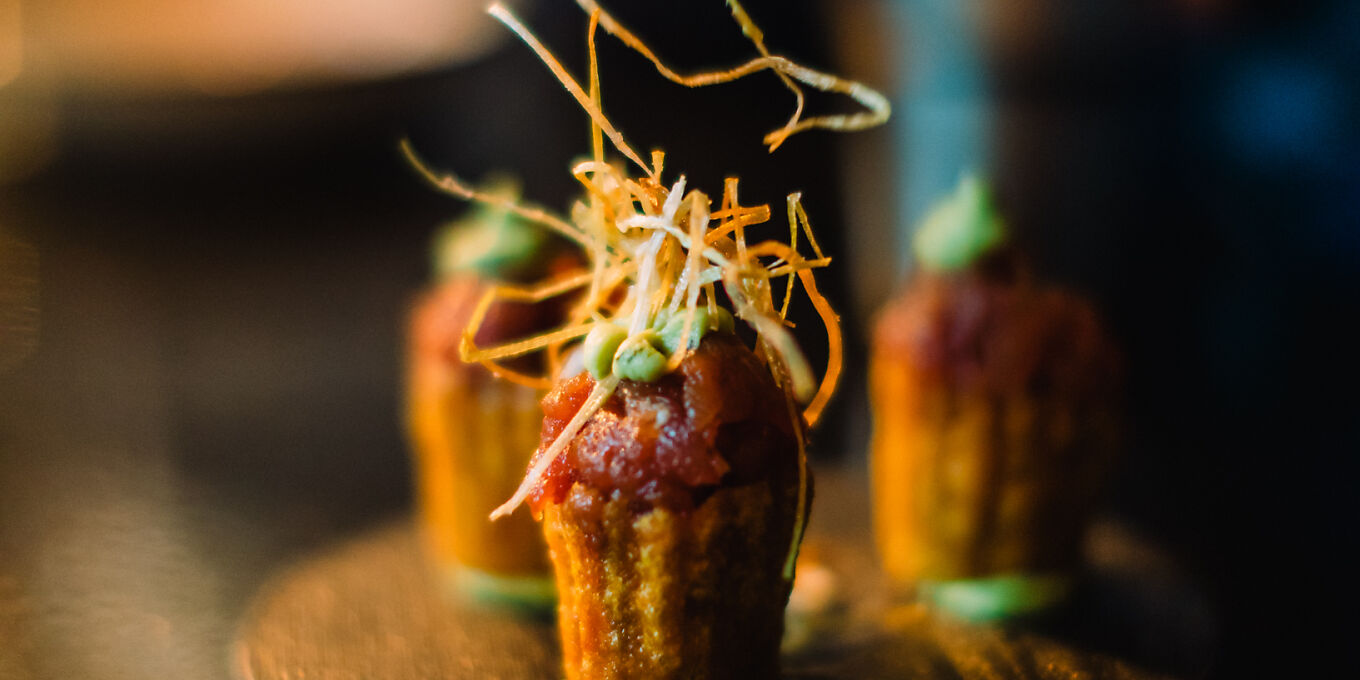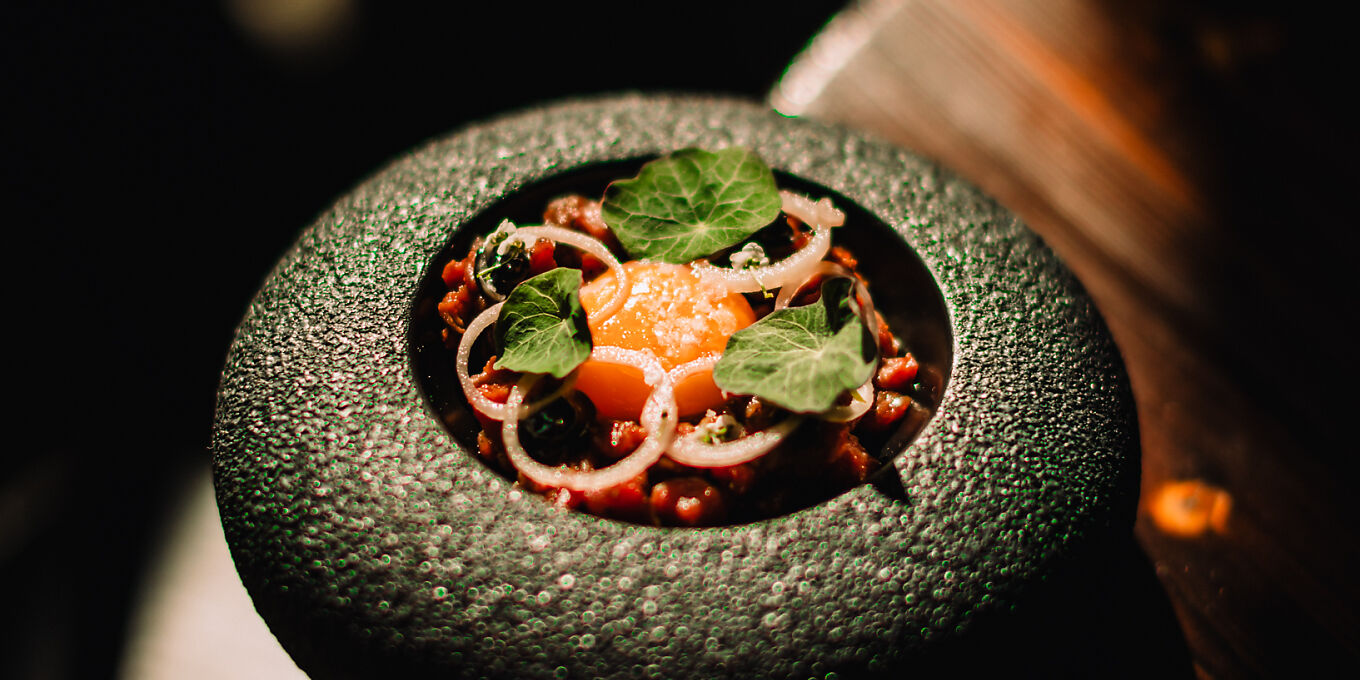 ‘We’re so lucky to have this restaurant in our city,’ exclaimed one Hull local, adding that ‘we enjoy sitting in the Paragon Arcade, dining on the large barrel tables with our dogs’. Inside, the place is painted black with a narrow staircase leading up to the main dining room. It’s a welcoming local treat if ever there was one, with a laid-back vibe, ‘magnificent mezcal-based cocktails’, exclusively Spanish wines and a line-up of original tapas. Owner Nick Hill is a highly talented chef capable of delivering food that is ‘next-level tasty’: his roast chicken skin butter (served with a sourdough country roll) is ‘divine’, but that’s just the start. Croquetas and charcuterie are all present and correct but it’s worth seeking out the more innovative ideas strewn through the menu – perhaps spiced sashimi-grade tuna accompanied by potato pavé and purple shiso or skewers of BBQ lamb breast slathe...