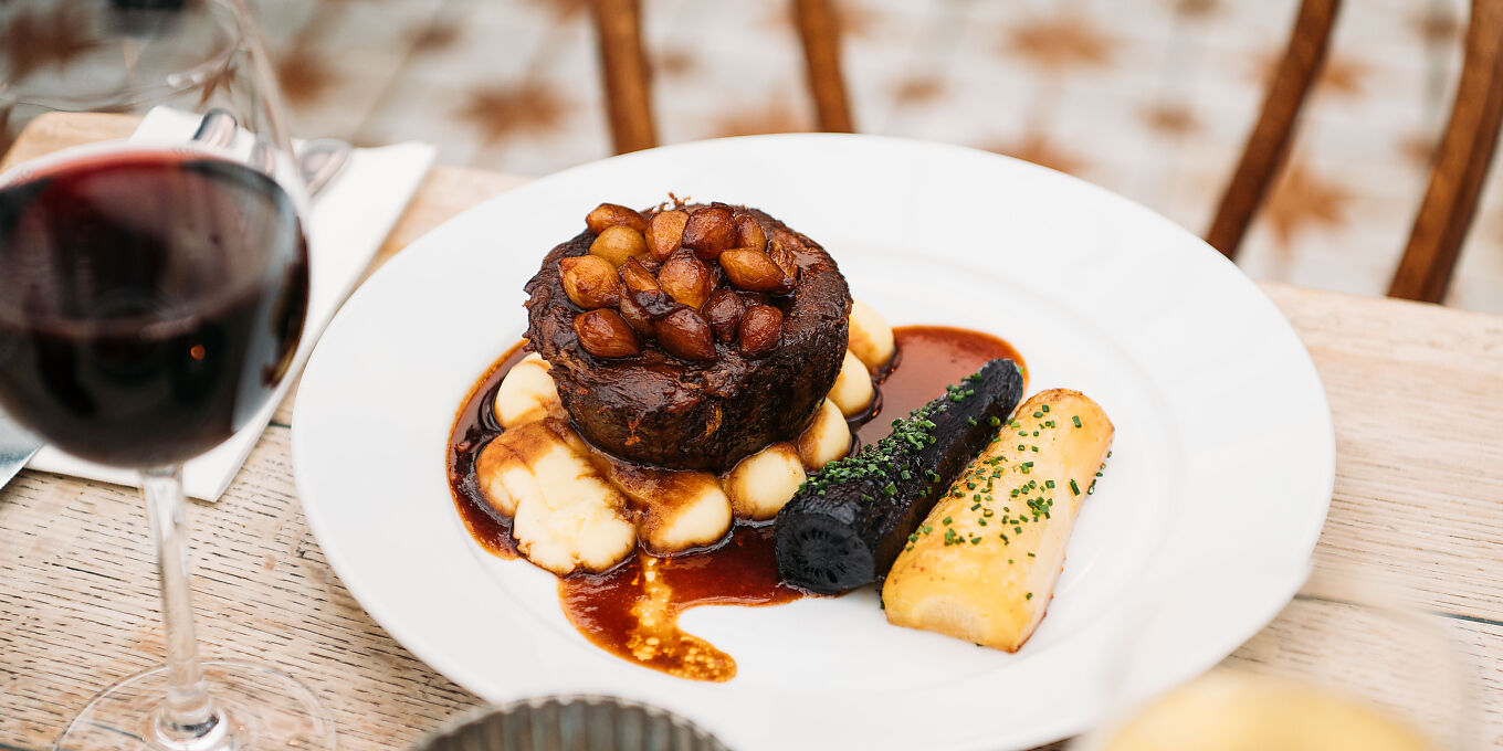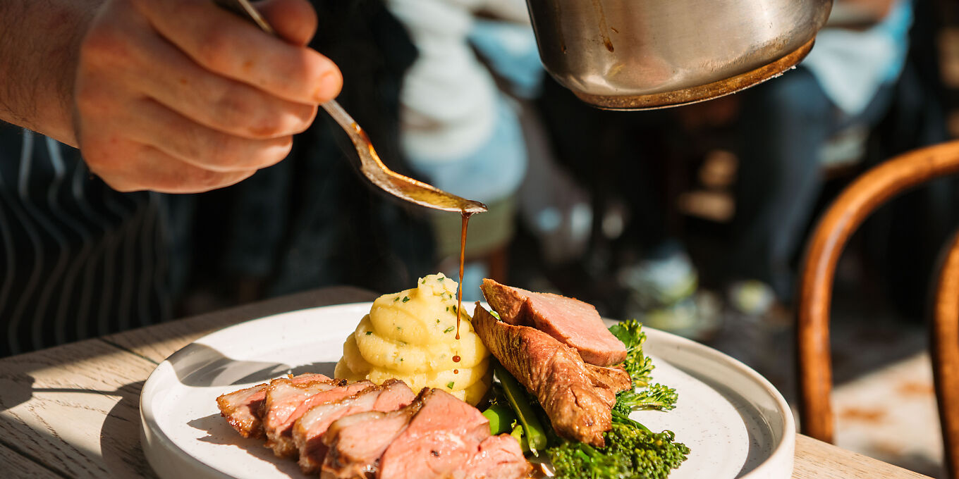 At our lunch, a toweringly meaty dish of slow-braised Knebworth Estate venison and beef served atop creamed potato and excellent braised carrots (one of several generous main courses) was lifted by sweet, juicy baby onions in a glossy, full-bodied gravy, while a sticky toffee pudding with butterscotch sauce and vanilla ice cream made a fortifying finish. It’s all delivered in an unfussy manner by relaxed, enthusiastic staff, and everyone seems to be having a jolly good time. Aside from real ales, the drinks offer also includes a short, well-priced international wine list.