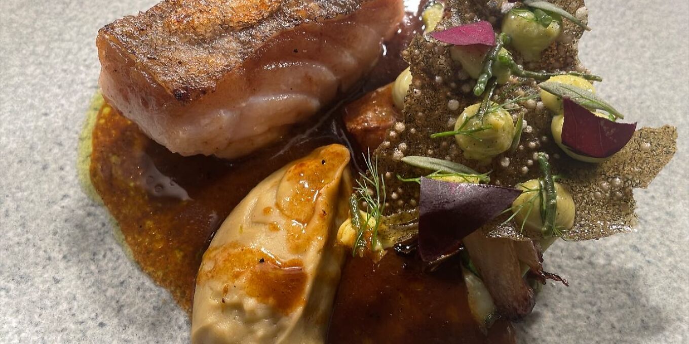 The more aspirational offerings land in the evenings, none more so than an ethereal twice-baked Parmesan soufflé, its outer crust all cheesy intensity, the interior a cumulus cloud of savoury delight. A dish from the old school of fine dining involves packing moussed scallop into an ink-black raviolo, saucing it with light choron, and garnishing it with zinging chorizo jam, shredded kohlrabi and a whole scallop. To follow, a serving of pedigree pork fillet comes with a cabbage-wrapped nugget of braised cheek, along with truffled fondant potato, grilled oyster mushroom and black garlic purée for a dish that evinces attention to detail in every element.