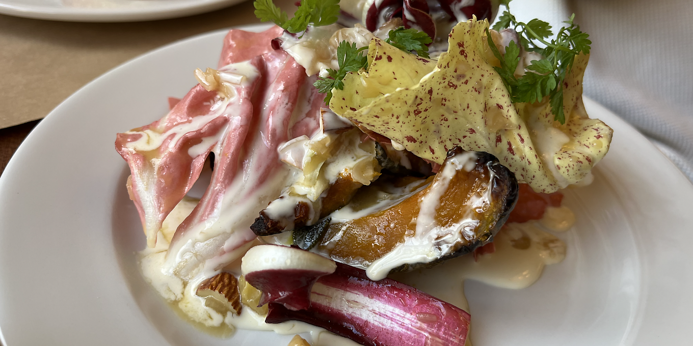 There was a definitive everyone-welcome atmosphere on our early Sunday lunch visit, with babies and children among the landscape of the packed-out (slightly awkwardly-shaped) dining room. From the open kitchen, led by a cheery and unfazed Klein, came a series of dishes full of confidence and good instinct. A salad of delica pumpkin, radicchio agrodolce and a unifying taleggio dressing was an early hit full of depth and tang. A humble bowl of pasta e fagioli was anything but: silken with olive oil and bolstered with rosemary. From the secondi a saline dish of braised squid with olives and fragrant mint was triumphantly tender – you could cut it with a spoon.